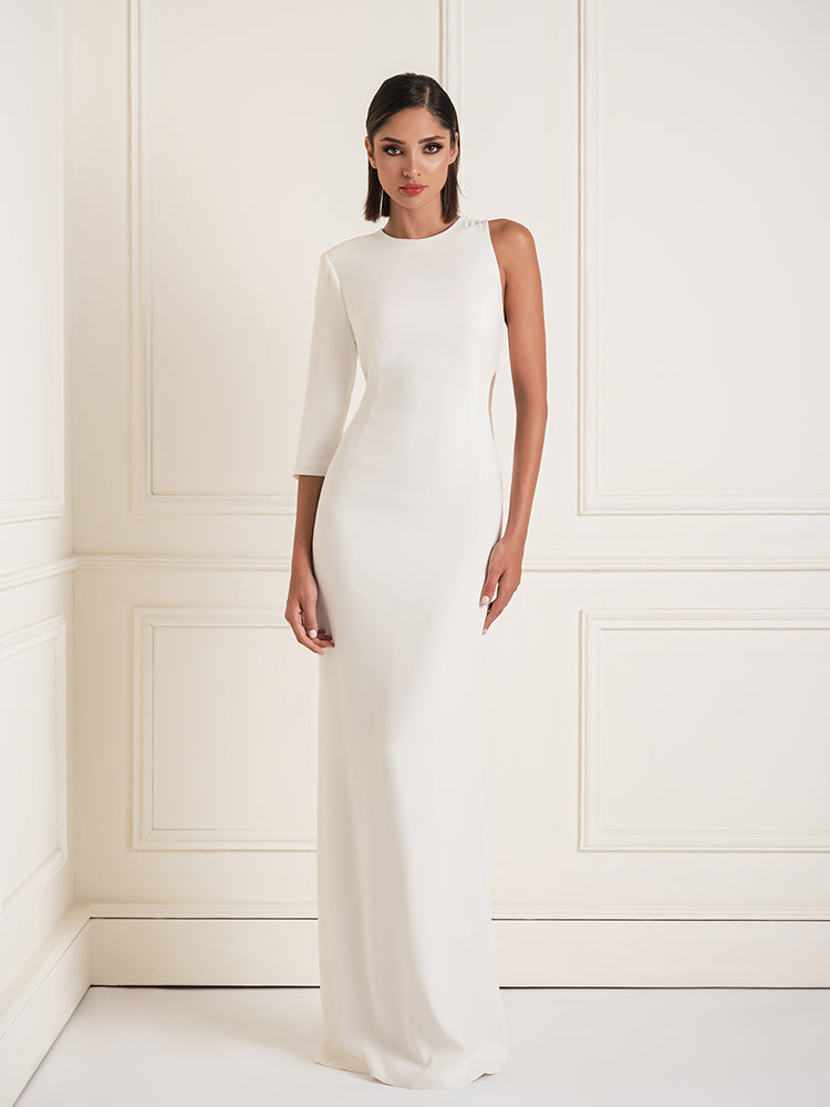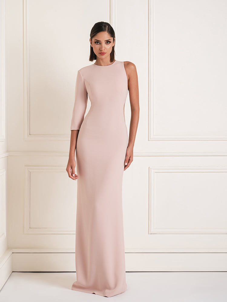 Elevate your elegance with our Long Asymmetrical Dress. This sophisticated piece features a unique asymmetrical silhouette, an eye-catching oval cutout at the waist. The invisible back zip ensures a seamless fit, while a small slit adds a subtle allure. Perfect for glamorous events or chic soirées, this dress promises to turn heads and leave a lasting impression.