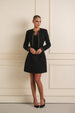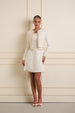 A timeless tweed ensemble crafted for refined sophistication. The mini dress and matching jacket feature a structured silhouette, subtle shimmer, and delicate chain trim that elevates the classic texture. Clean lines and a polished finish bring modern femininity to an iconic, understatedly luxurious look.