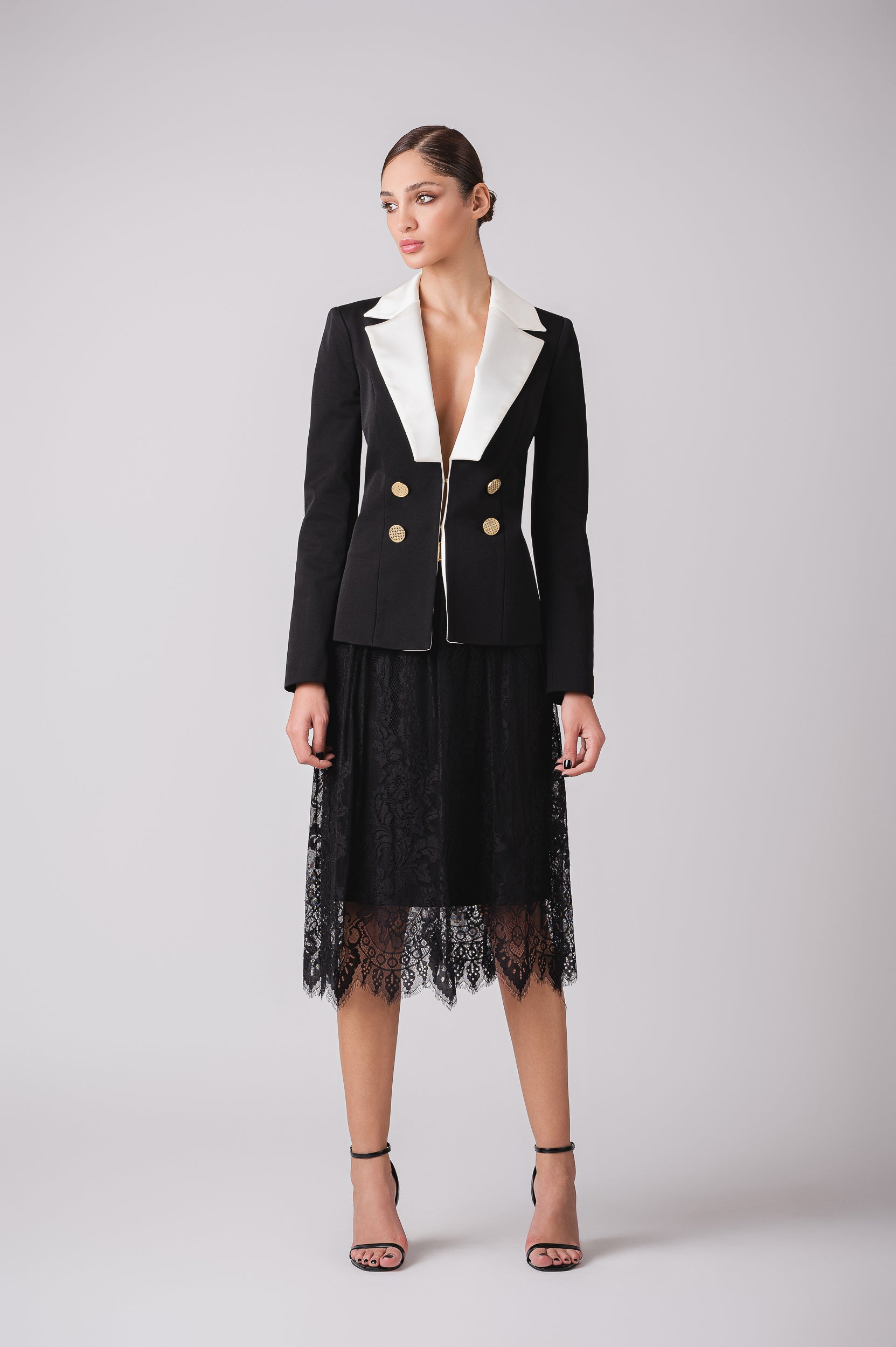 Our High-Waisted Midi Lace Skirt, a stunning piece that beautifully blends sophistication with a touch of drama. Its unique feature is the overlay lace, creating a captivating and delicate appearance, with the lining slightly shorter, adding a hint of allure. Ideal for pairing with a blouse, a tailored blazer, or your favorite top, the High-Waisted Midi Lace Skirt is a wardrobe essential that infuses timeless charm into your ensemble.