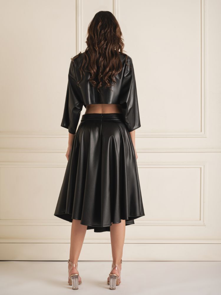 This Midi Leather Flared Skirt combines effortless style with a bold edge. The flattering silhouette and soft leather-look finish create a chic, versatile piece perfect for both day and night.