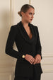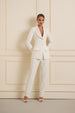 A refined suit set elevated with delicate pearl trimming that highlights its clean, tailored lines. The structured blazer features a defined silhouette and subtle pearl accents, adding a touch of feminine sophistication. Paired with matching tailored trousers, the look blends classic tailoring with soft, modern elegance.