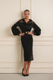 A tailored crêpe pencil skirt elevated with satin trim for a soft, refined finish. Sleek, modern, and effortlessly elegant. A polished staple that transitions seamlessly from day to evening.