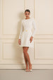 A tailored mini dress with sculpted shoulders and a flattering A-line silhouette. Clean, modern, and effortlessly elegant.