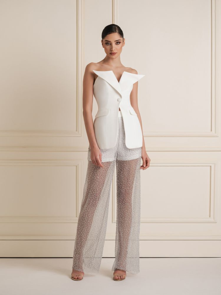Expertly structured for a sculpted fit, this strapless bustier exudes modern sophistication. Its tailored design enhances the silhouette, making it a timeless statement piece for any occasion.